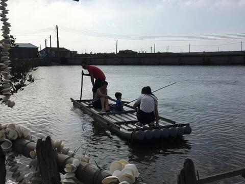 如果不想下水,你也可以乘坐膠筏漫遊漁塭,微風徐來悠閒愜意,感受漁村生活的氛圍。