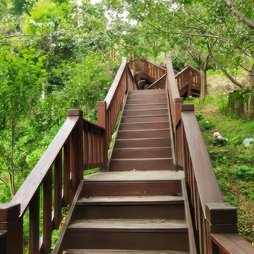 ▼往後山走去,爬了不少樓梯,但沿路都有繡球花和其他漂亮植物相伴,所以不覺累,很快就走完了一圈。