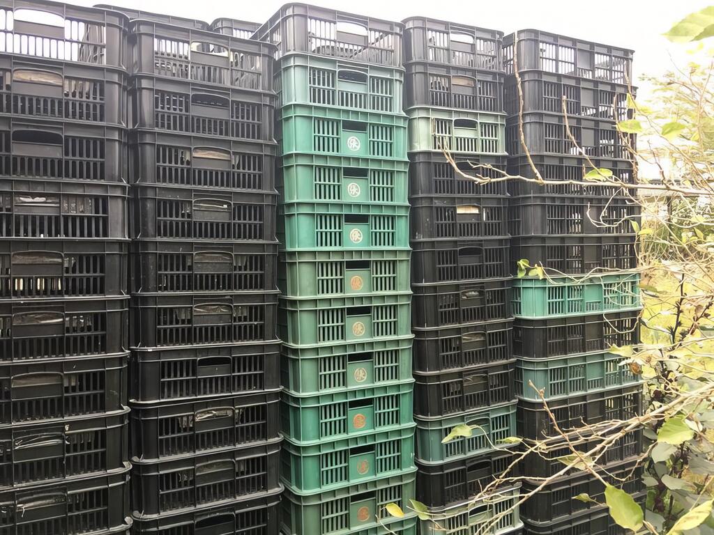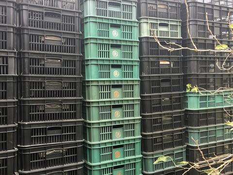 ▲標示「張」字的盒子堆放在果園旁,顯示採收旺季的盛況