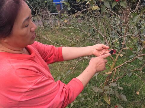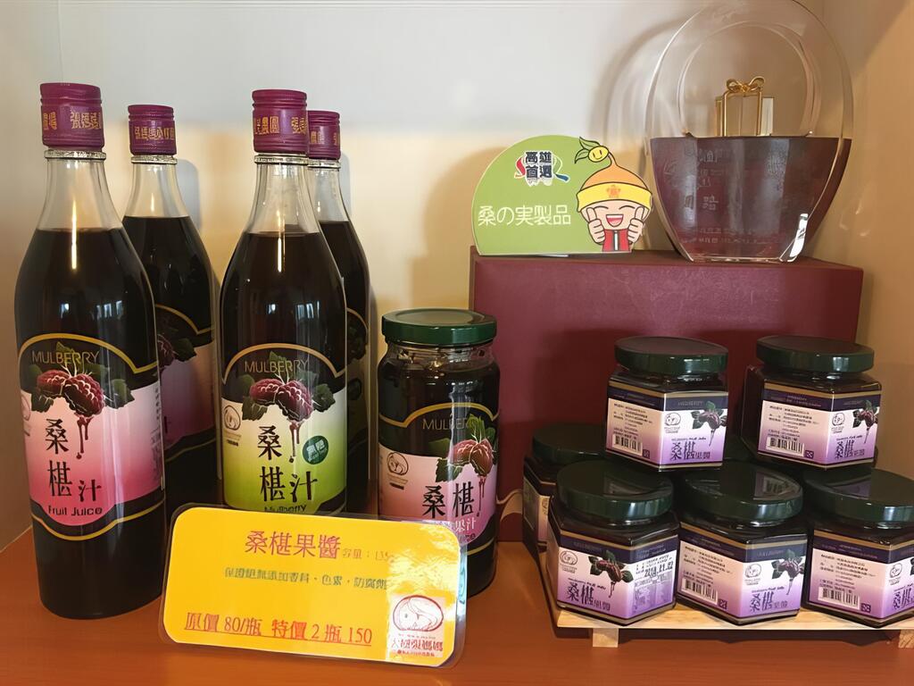 趁著等待鳳梨酥烘烤的空檔,我們驅車前往另一處位於佛光山下、以桑椹為主題的果園「大樹張媽媽休閒農場」。第三代經營者張瑛珊表示,這片果園從阿公時代就有了,因為桑椹不易保存,阿嬤靠著熬煮桑椹汁銷售,逐漸贏得顧客口碑。桑椹富含非常高的營養價值,可惜本身十分脆弱,不耐運送、不易保存,不像其他水果容易運送銷售,通常會在採收旺季,清洗後急速冷凍,保持桑椹鮮度,再慢慢研發出各式加工製品,深受消費者的喜愛。