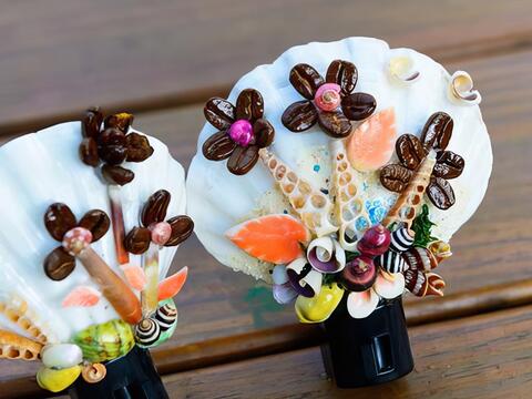 結合咖啡大街上的貝殼店家,推出用咖啡豆製作夜燈裝飾的DIY,非常適合親子手作的活動,製作過程簡單但需要腦力激盪,完成品絕對獨一無二,夜裡的這盞小燈光芒帶著一分成就感。防蚊擴香石是因應當地環境而誕生的手作品,用香茅精油做成咖啡豆的造型,可以掛著驅除蚊蟲。