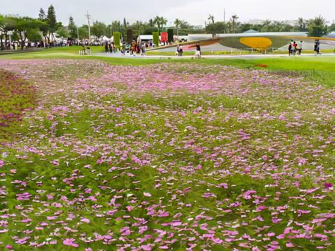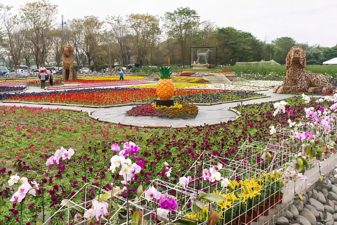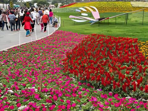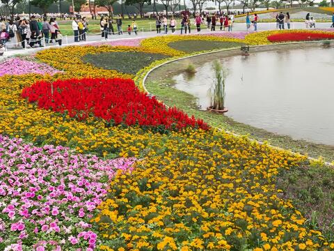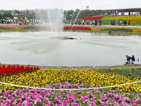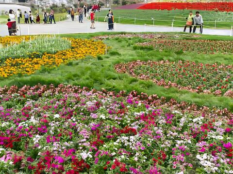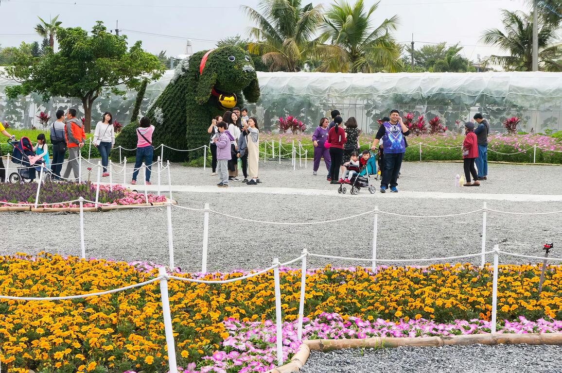 繽紛多彩的花海裡,隱藏了狗骨頭與腳印的圖案,祝福大家好運旺旺來,是熱門拍照打卡地點。
