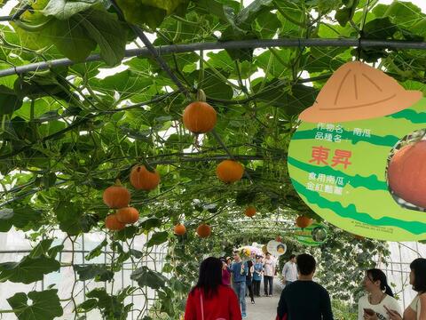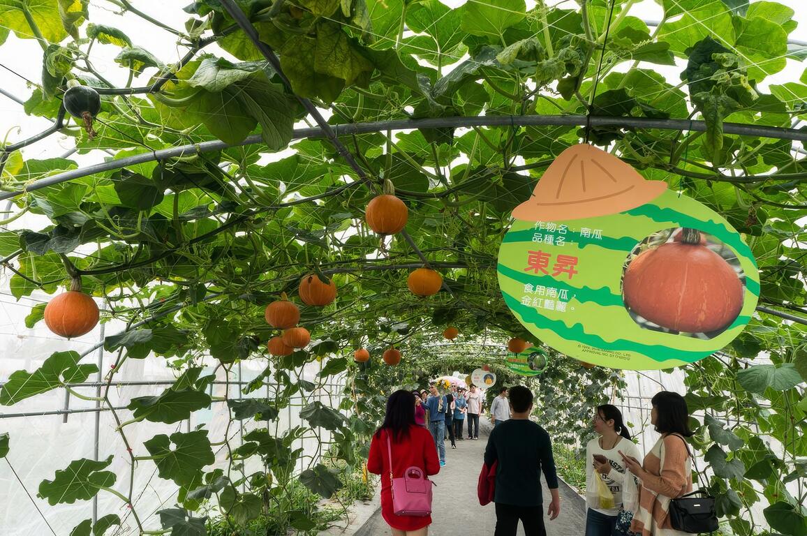 全台最長1600公尺綠色長廊,由多樣奇特瓜果藤蔓作物組成。