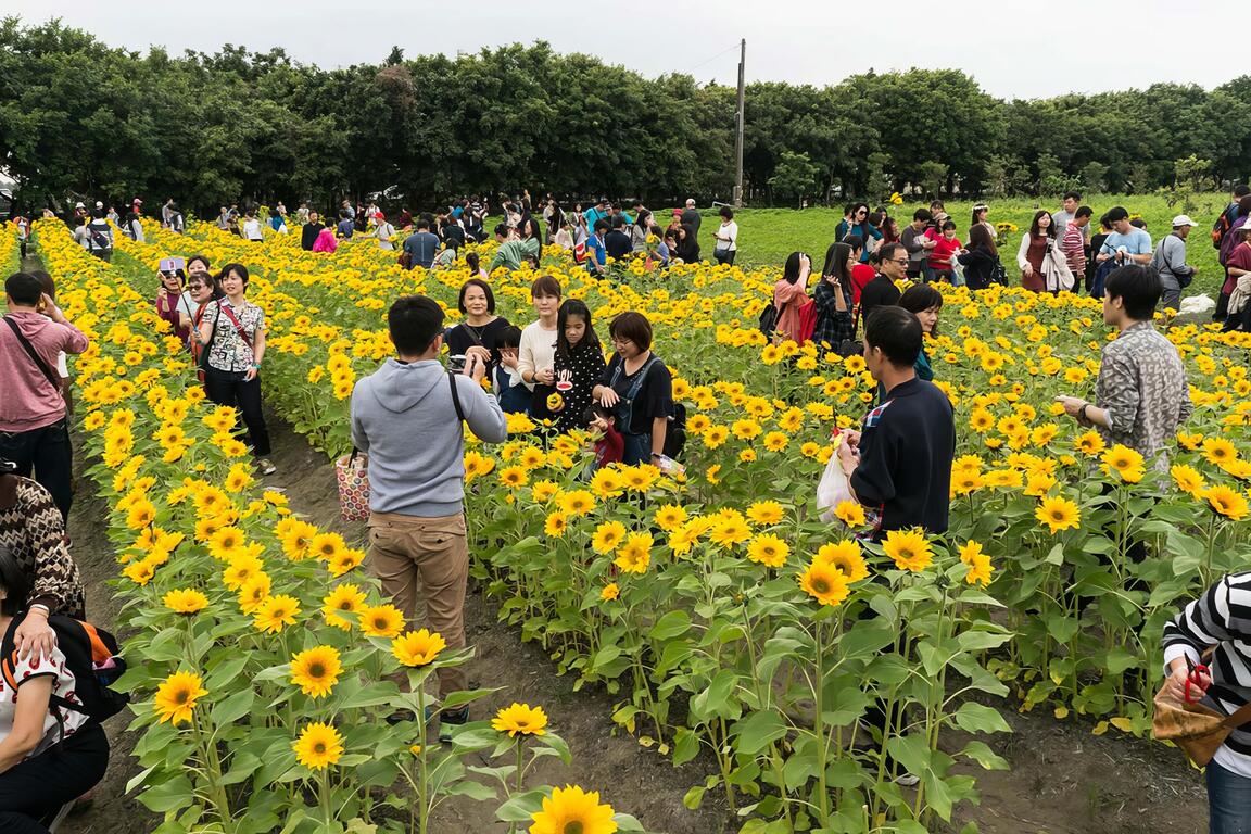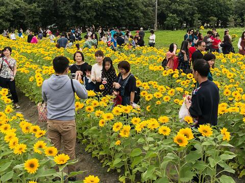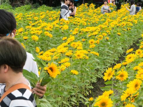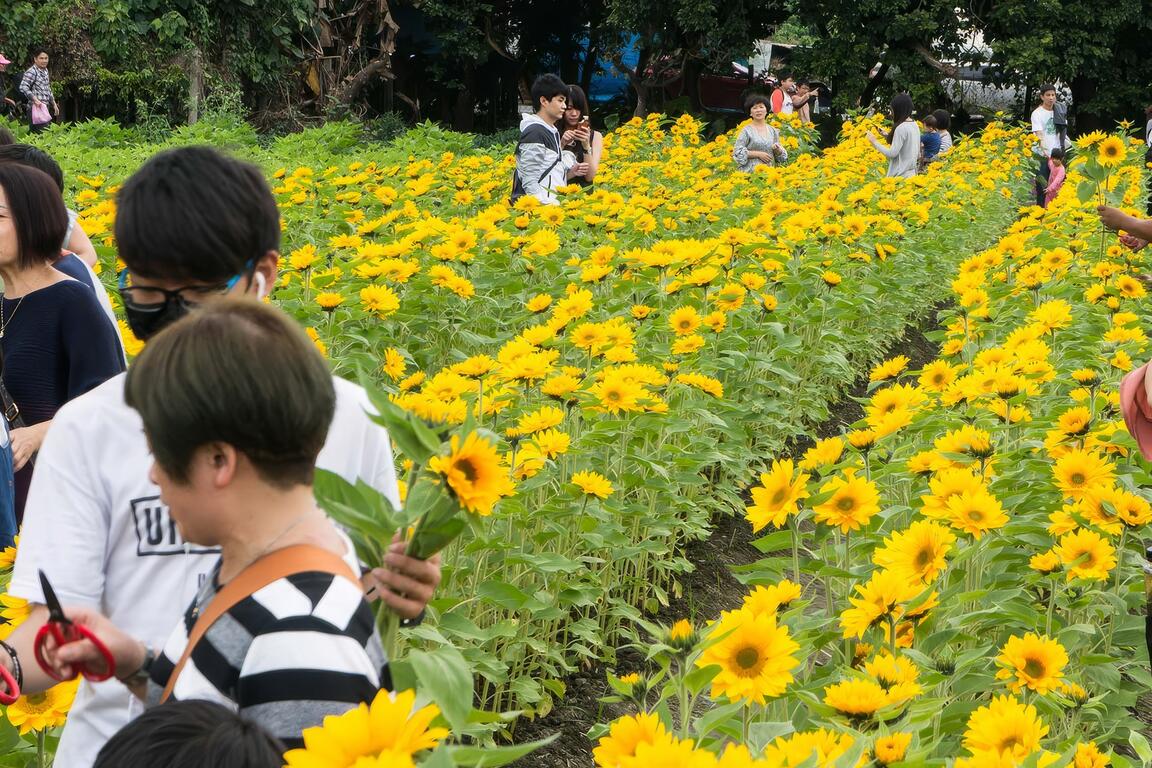 現場提供現摘的付費向日葵體驗,以摘下的向日葵支數進行計算。這裡應該是現場少數可以下到田中手做體驗的地方,加上花況也不錯,不少民眾停留與此留影。