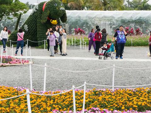 應景配合今年狗年主題,於「迎春花海」區中放置了以狗為主題的戶外裝置,讓民眾留影。
