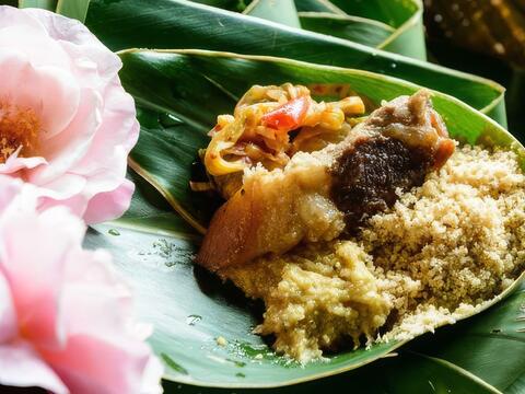 小米不一定常吃,甚至沒見過原來的樣貌,在蓋亞那工坊一次知道如何將小米去殼、過篩、搗成小米糬。