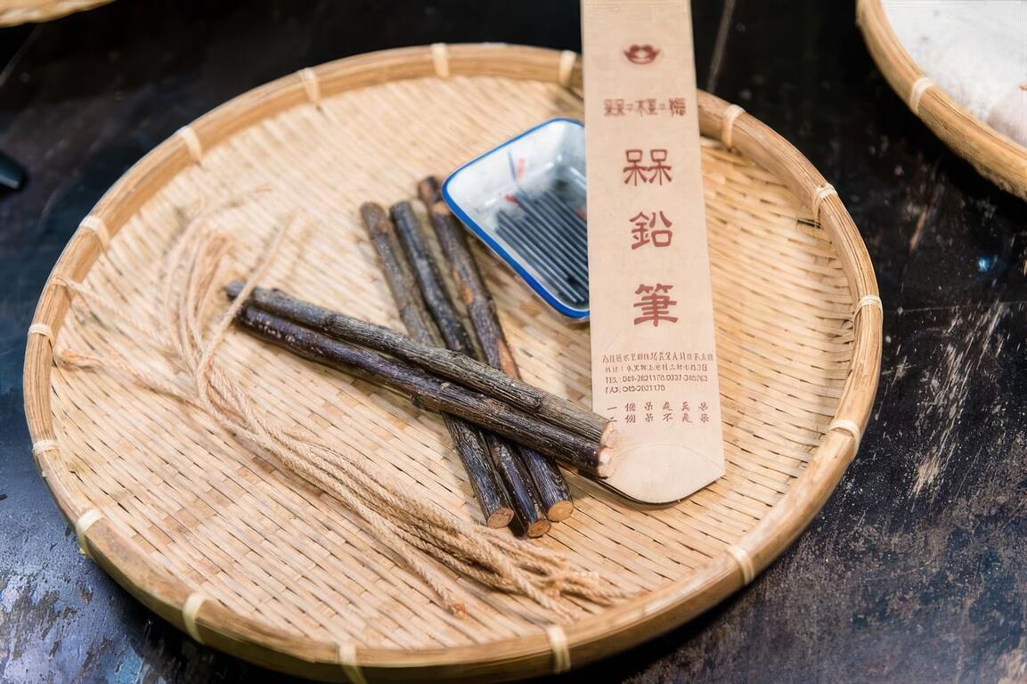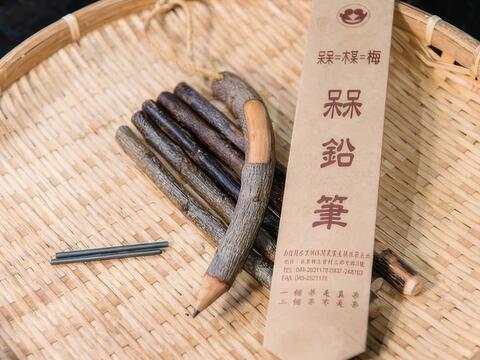 ▲梅樹每年會生出徒長枝,冬季需要將這些徒長枝修剪下來,以提高春季梅子的品質,如今透過創意的發想,這些修剪下來的梅枝成了槑鉛筆的素材。