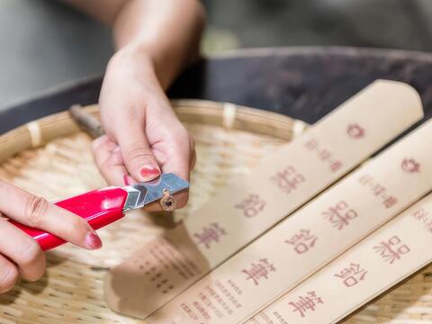 ▲你有削過鉛筆嗎?梅枝硬度比想像中高,如果你很會削筆,歡迎來挑戰梅枝筆桿。
