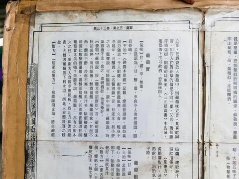 ▲老闆拿出非常多資料和我們說明葡萄與種植,連《本草綱目》都拿出來了。