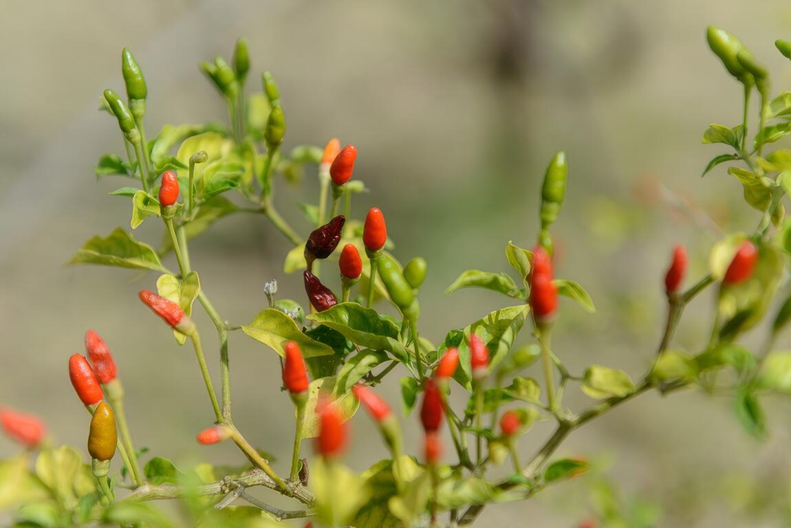 圖說:我們走在田間發現一株雞心辣椒,農場主人笑著說這是鳥兒種的,因為種籽是隨小鳥的糞便落下,現在長成一項作物。