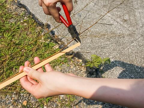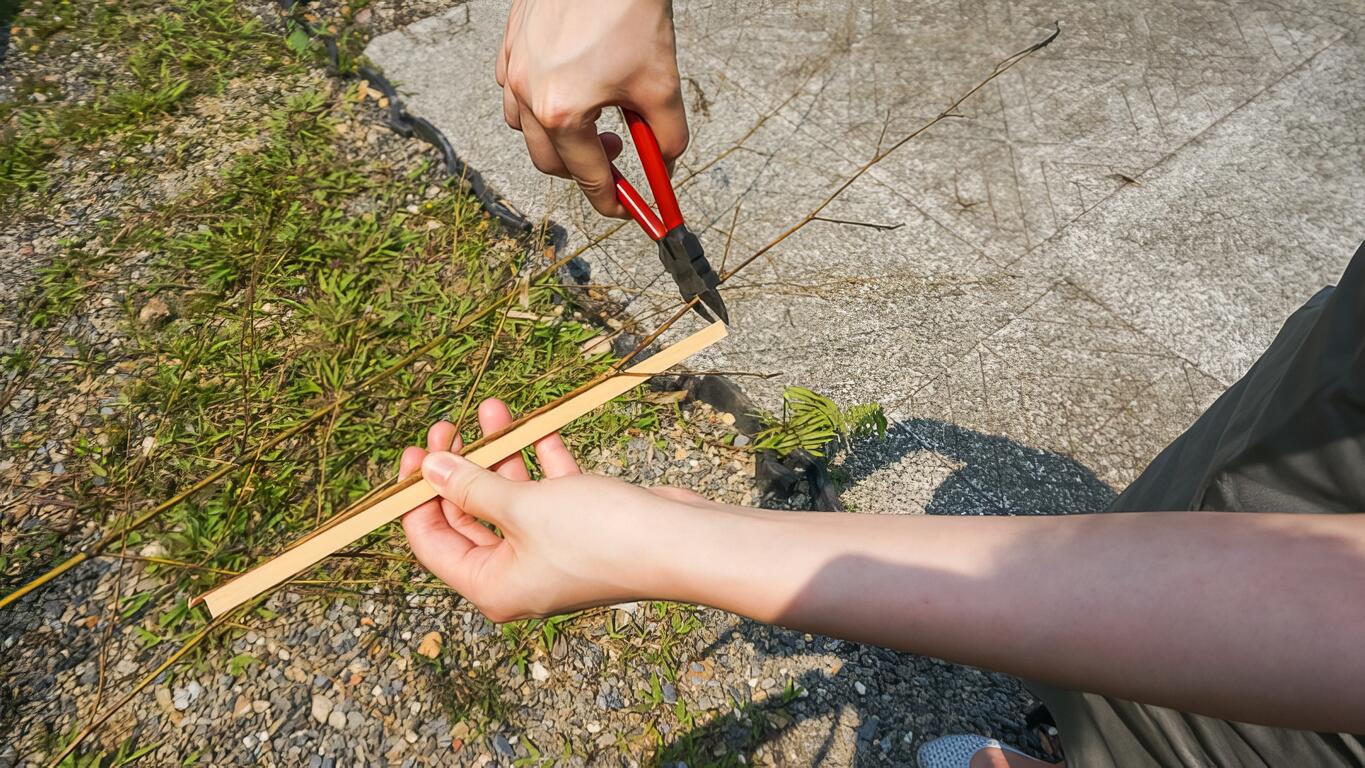 ▲1分鐘到後院剪竹枝,竹枝是燈籠剪影的來源。