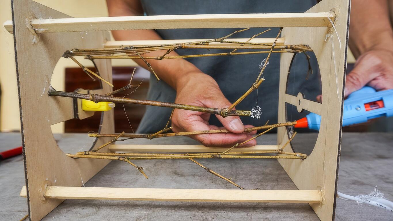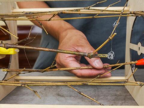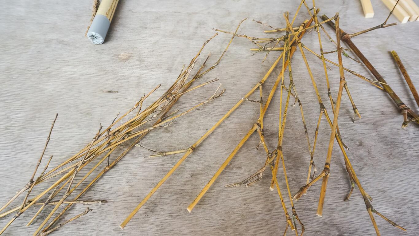 ▲以竹枝作畫的概念,想要呈現什麼圖,就透過黏竹枝來完成,20%的創意所在。