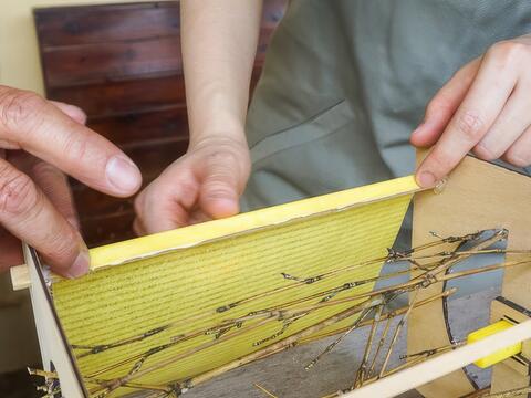 ▲將紙黏上燈籠,紙的尺寸已計算好,恰好服貼骨架。