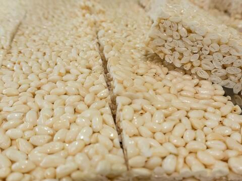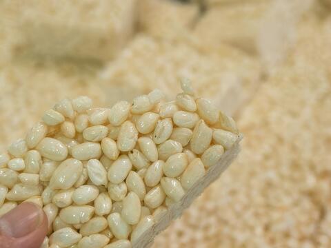 但做米香可不是簡單的事,當你開始拌糖漿時,得用上快速且協調的動作,否則糖漿一硬化就會變成大塊黏在一起的米香球!而當你拿刀要切米香時,力道與節奏也得恰到好處,如果施力點不對,切出來的米香就會大小不一、形狀怪異。