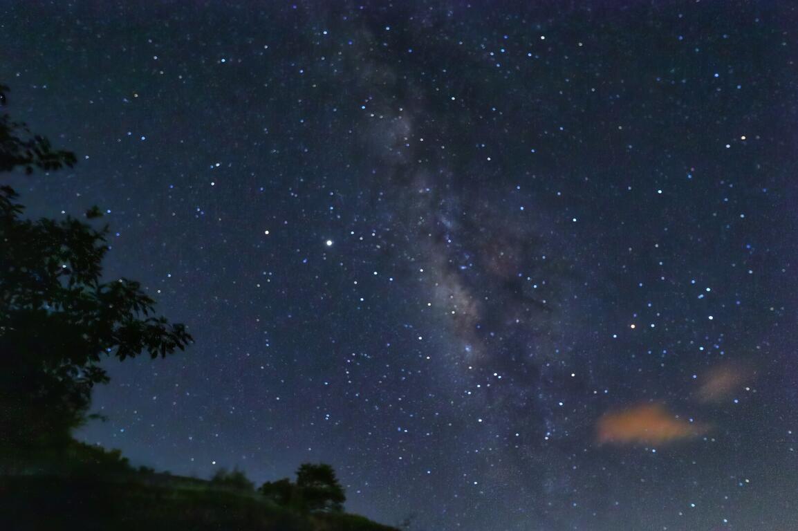 回到民宿,整片山頭都已關上了燈,這時就是星星出來上班的時候了。夜晚在這裡抬頭仰望是整片銀河,天空點滿了白銀的珍珠,不停地閃爍,今晚剛好月亮還沒出來,所以星星一直擔任著主角。躺在民宿旁的木棧看臺上,迎來著微風的吹拂,欣賞著一整片的夜空,仔細欣賞還可以看到數十道流星劃過。看到這片星空,這趟金針花旅就值得了。