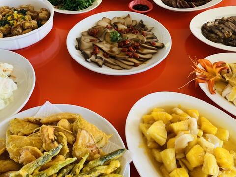 第一站來到了鐵掌櫃享用午餐,在這裡你可以吃到山中的好味道,食材都是用當季的鮮蔬料理而成,像是軟嫩的放山雞,或者酥炸金針花都是在地農家的特色料理,而清爽的涼拌鳳梨生薑絕對是夏天必點,吃下去消暑又解熱。