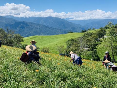 接下來就是本次活動的重頭戲,來參加金針花季遊程怎麼可以不採金針花呢!這次花蓮富里兩天一夜的遊程帶著遊客體驗採金針花的樂趣,依著小徑在金針花田裏面,尋找尚未開花的花苞,摺起時還有清脆的聲響,超級療癒!在邊採的過程中還可以欣賞美麗的山景,可真是一舉兩得啊!