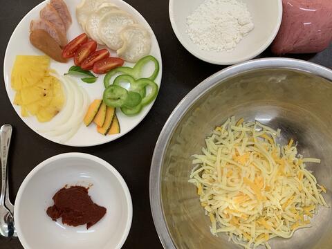 進教室,桌上已經準備好做Pizza的菜料