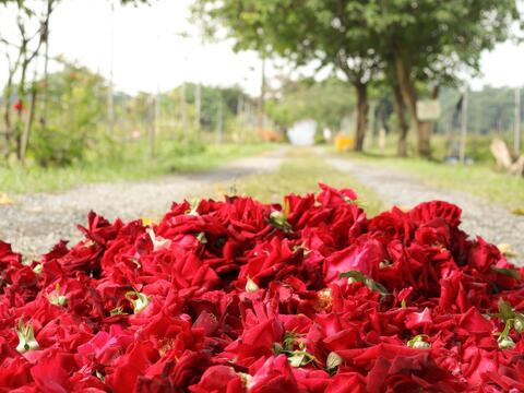 來到大花玫瑰休閒農場的第一個行程就是參加玫瑰花瓣醬DIY,教你運用園區的玫瑰做成香甜的花瓣醬。一開始跟著工作人員進入玫瑰田中,挑選做醬所需的玫瑰花,只是在整片綻放的玫瑰園中,真讓人難以選擇,工作人員特別吩咐,看到喜歡就直接下手,不然挑到最後就被別人採走了。