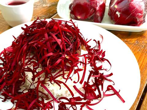 玩完遊程,接下來就是品嚐玫瑰花製作的特色餐點。有用玫瑰花瓣代替海苔做成的玫瑰壽司卷,還有暖心的玫瑰花火鍋,琳琅滿目的玫瑰花料理,讓你每種菜色都想嚐一遍。