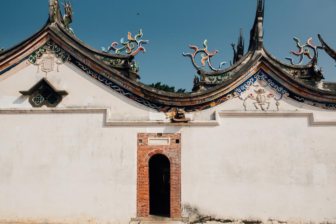 騎著腳踏車悠遊社區,在拐彎之處,會突然遇上這整面壯麗的剪黏交趾陶花牆,春天白花燦爛、夏季綠意盎然、秋季結果、冬季枝條蕭索,彷彿是繽紛的人生四季,感受工藝人一片片細膩疊合的巧心。