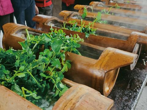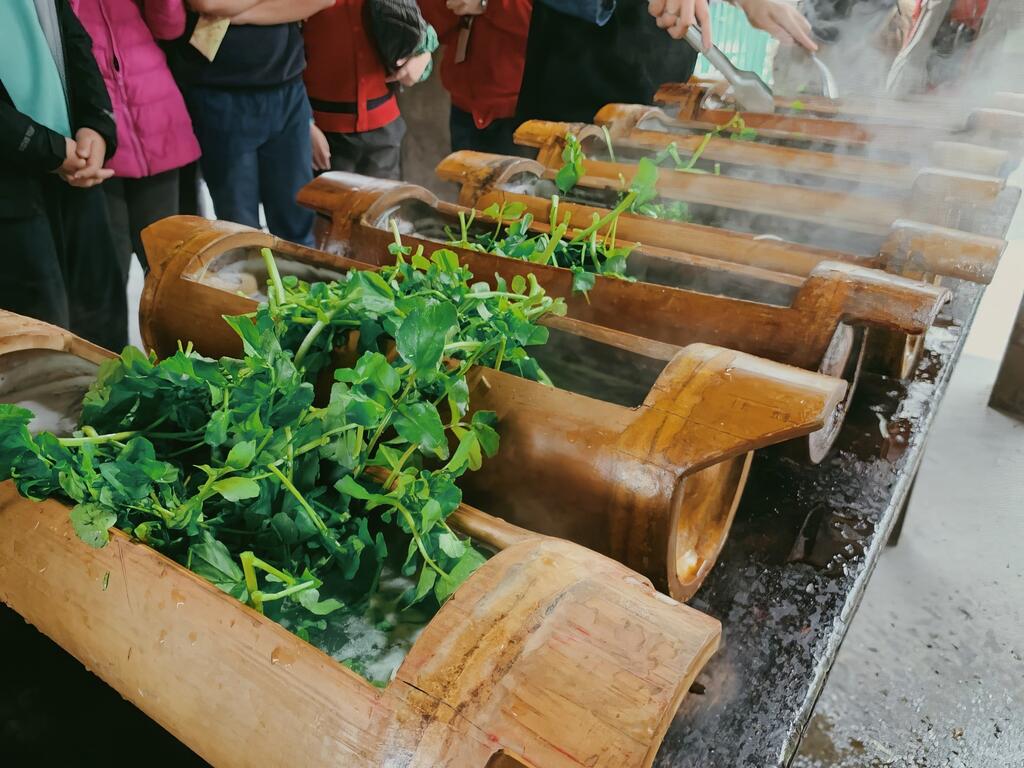 除了捕魚體驗,「石煮鍋」也是園區非常值得參加的活動。石煮鍋是傳統原住民的料理方式,因為以前的人並沒有鍋子、瓦斯,為了在野外烹煮食物只好就地取材,所以容器取至山中的竹子,食材來自芙登溪裡的魚蝦以及溼地裡的野菜,加熱則是放入燒燙的石頭,利用石頭的熱度煮熟食材,整個料理過程不會製造出任何垃圾。