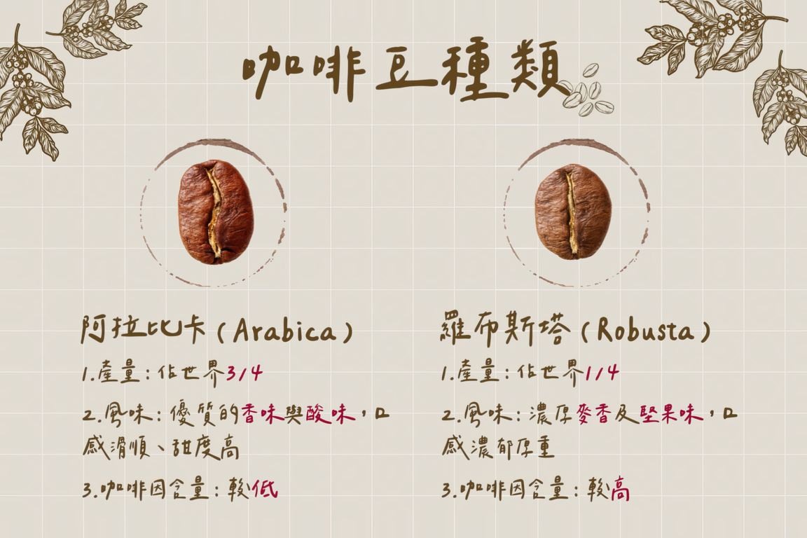 目前鑑識出來的咖啡樹品種很多,但市場上具商業及經濟價值的咖啡豆僅下列兩個樹種為主: