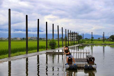 官老爺休閒農場招牌水池與竹筏秧桶船體驗活動