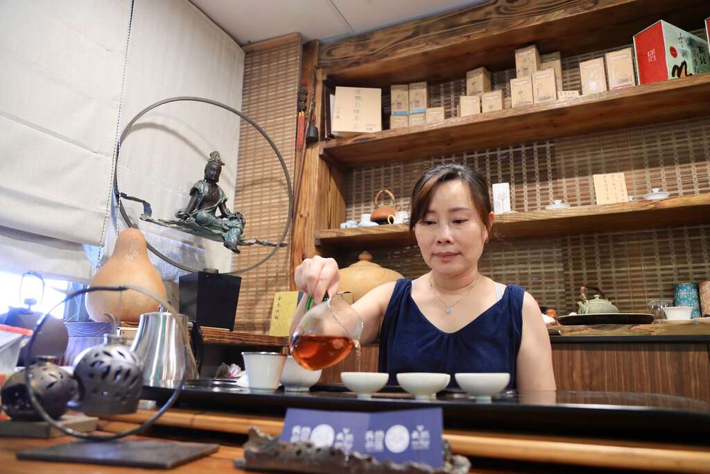 天然茶莊女主人周慧慧,老公蔡旭志種茶製茶,她則協助開發了許多茶點等周邊商品。