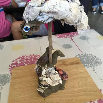A:《王功蚵藝文化館》坐落於彰化王功漁港,鄰近《斗苑休閒農業區》。因為牡蠣(蚵)是彰化王功的特產之一,人們紛紛前來品嘗美味的牡蠣,卻留下不少廢棄的蚵殼。在參觀台灣各地與綠島、發現美麗的貝類藝品之後,我們決定為蚵殼找到再生之路,結合黏土、顏料、海砂、鉛線等材料,創造具有獨特性的藝術品。目前館內可見學員創作的各式作品與在地漁民的故事,館外則有蚵農的身影與蚵田,期望將王功打造為知名的海洋特色文化區。