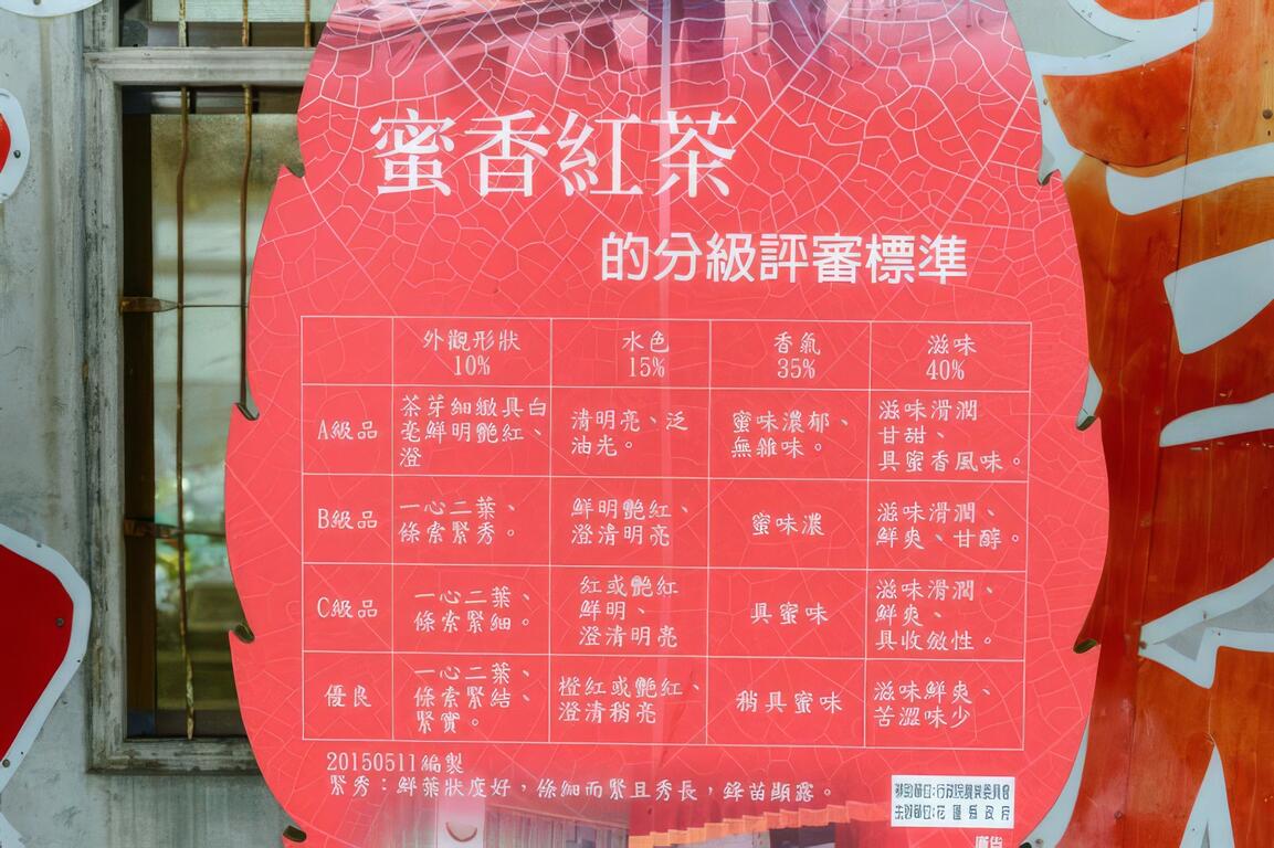 蜜香紅茶分四級,評選項目包含外觀、水色、香氣及滋味。