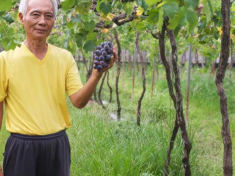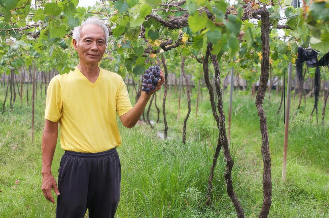 「我從小就在葡萄園裡長大。」現年65歲的黃錫瑋說,台灣葡萄種植歷史可回溯民國50年代,那時有位彰化大村居民從日本引進巨峰葡萄,成功在氣候炎熱的彰化將這溫帶水果馴化,10多年後政府與學術單位開始推廣,以大村為中心推展試種到溪湖、卓蘭、東勢、新社、信義、水里等地,就此開啟台灣巨峰葡萄輝煌史,黃錫瑋父親也是當時先驅葡萄農之一。