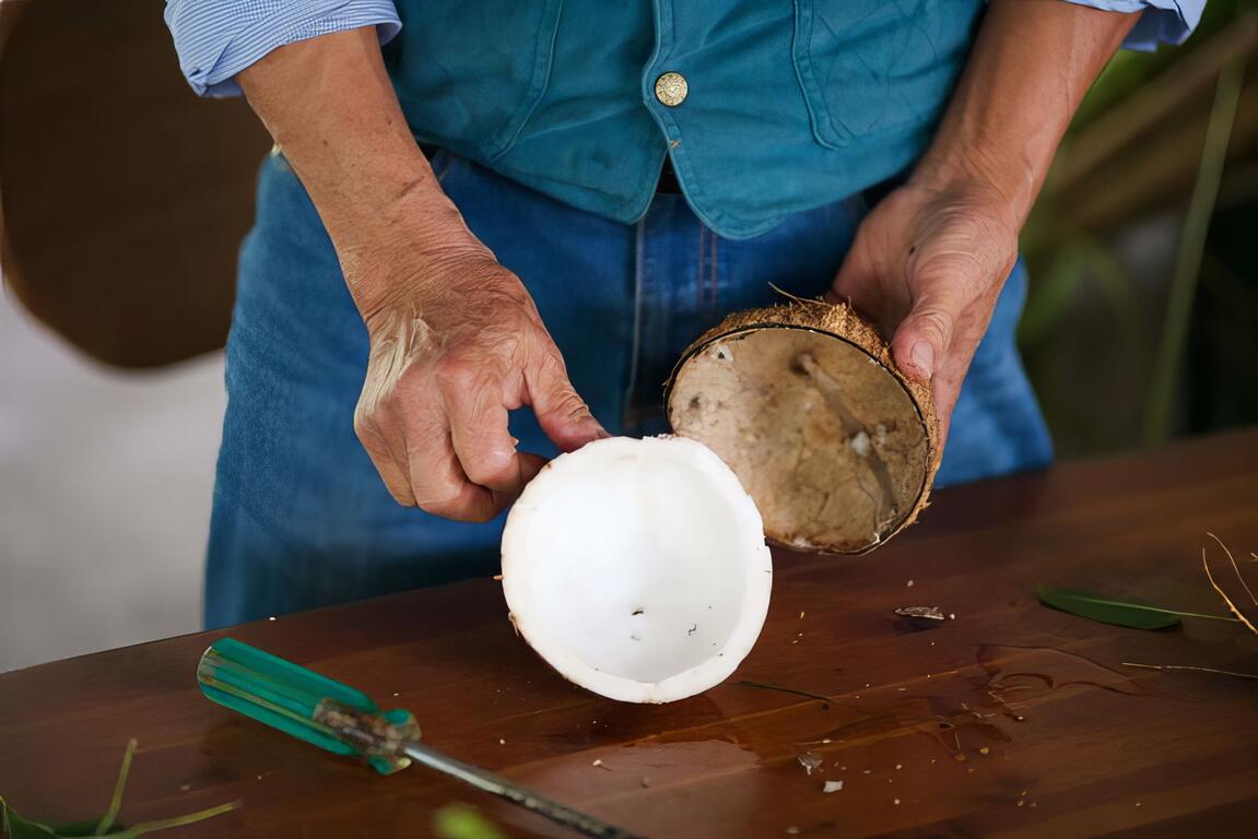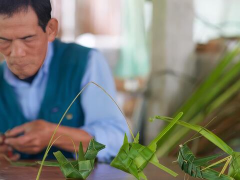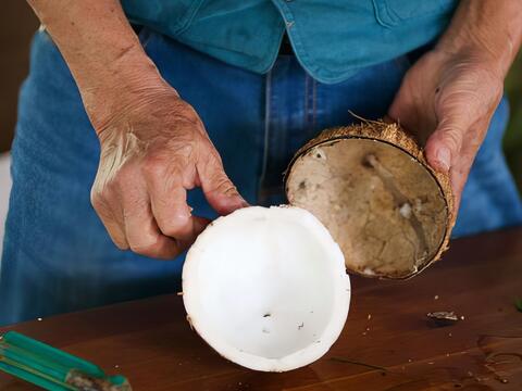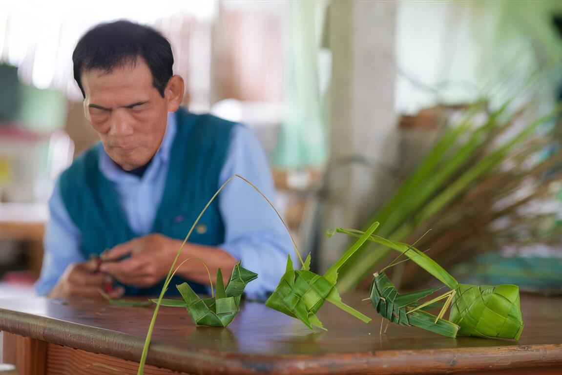 不過,鄭春喜沒那麼專心在種田,或許是頭腦好,也或許是懂得人生樂趣,他一邊採椰子,一邊買賣土地,一邊種起釋迦、火龍果,還一邊自己寫書法、學樂器、玩木頭、作草編,整個農場就是他的大型遊戲場。