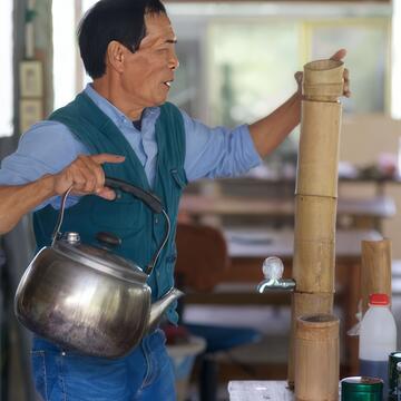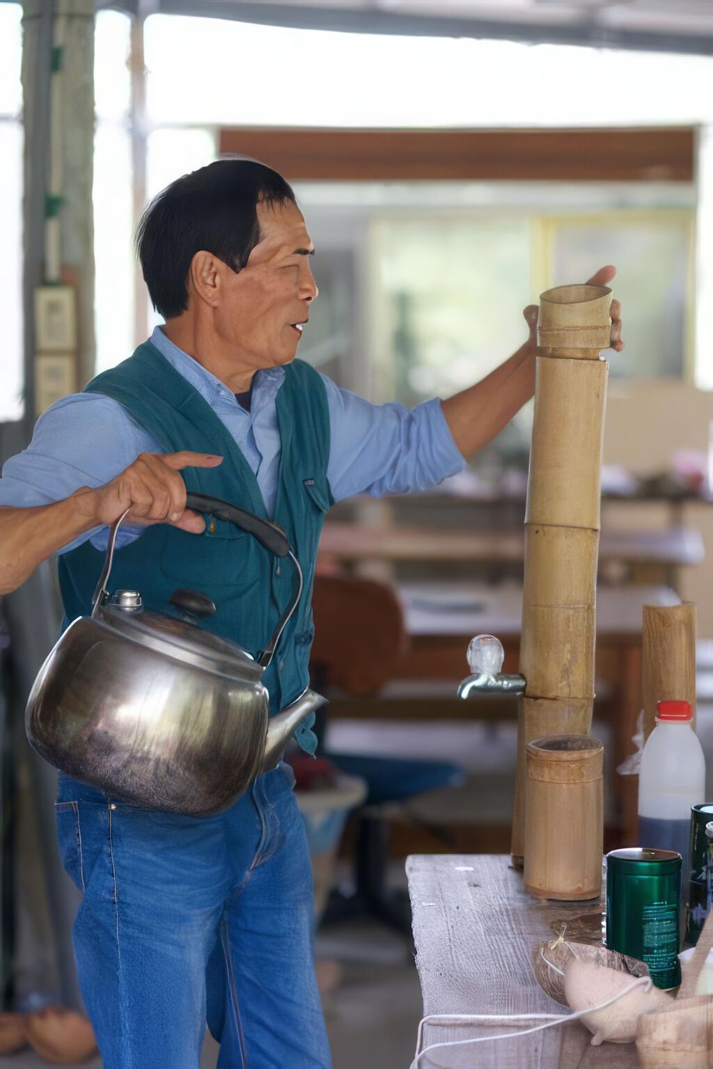 走進初鹿椰子林,到處可見鄭春喜親手DIY的竹子泡茶器、原木桌椅、竹子搖椅與鞦韆。閒來沒事就到鄰近的台東原生應用植物園或鹿鳴酒店表演樹葉口技,順便吃個飯店自助餐,或到處訪友、跟鄰居聊天、或在農場裡割割草、挖挖水池,過得快樂逍遙。