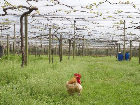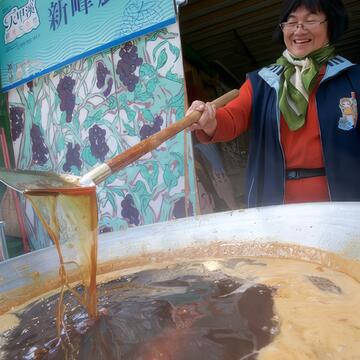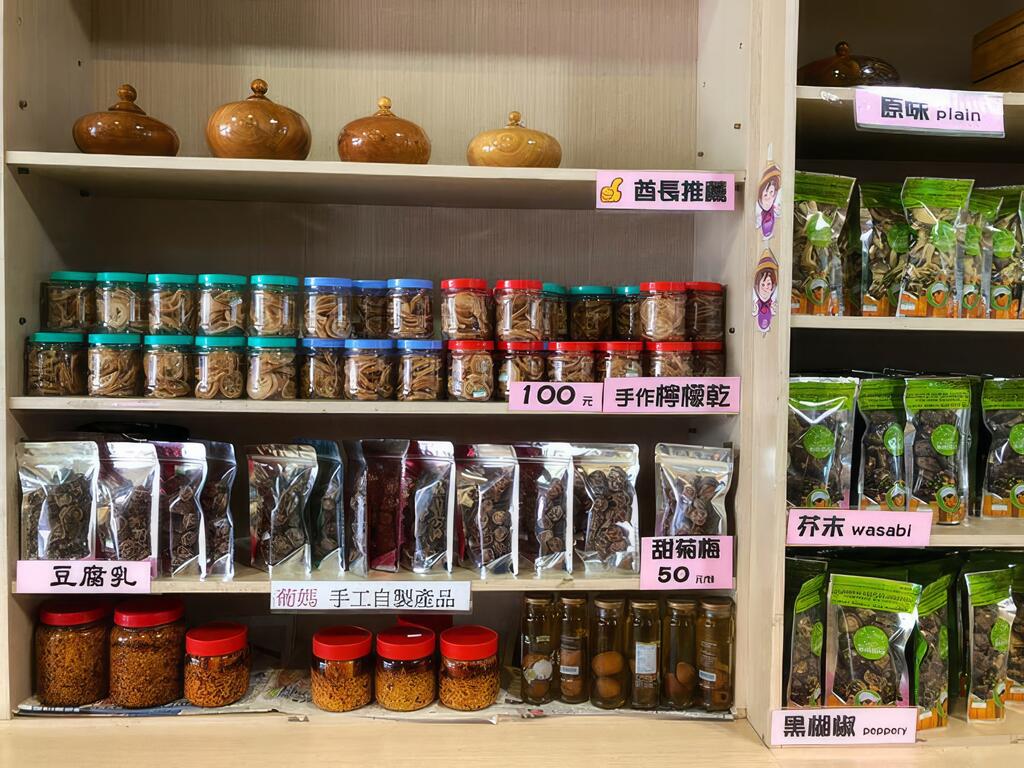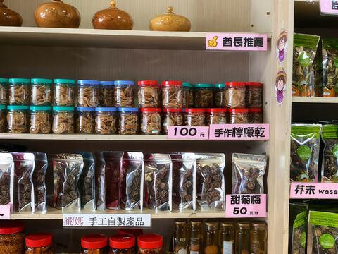 新峰農場最讓人印象深刻就是那份勤樸。在農場接待中心,滿牆各式各樣的果乾與農產品,從醃蘿蔔、陳年老菜脯、豆腐乳、果乾、蜂蜜、檸檬乾、香菇、枇杷蜜餞與枇杷膏等等,多數都是陳榮雄一家人親手種植並加工製作的產品。走進果園裡,處處可見或許養了雞、種了蔥、薑與蔬菜,認真利用每一分土地。