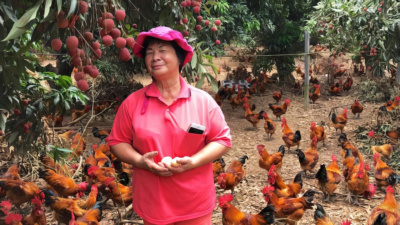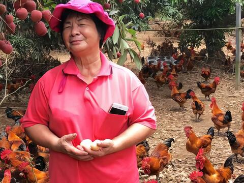 阿春姐的荔枝園目前有幾區單純只種荔枝,也有幾區養著土雞,遊客都笑稱:「分不清那到底是奶雞園還是土雞園」,奶雞樹下有土雞,土雞園裡有奶雞。
