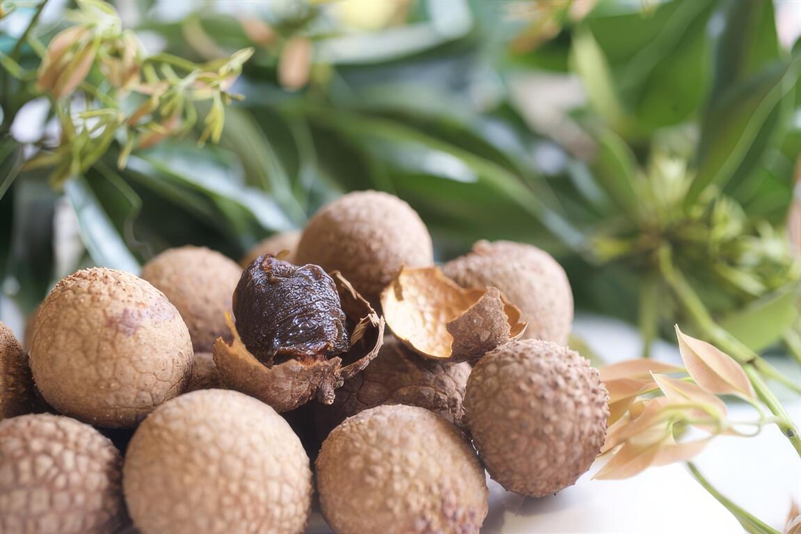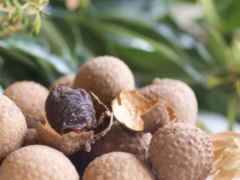 最值得一提是荔枝乾。荔枝跟龍眼一樣,採下後頂多兩三天就鮮味消逝,一定要儘快食用或加工處理。龍眼的作法是柴焙成龍眼乾,荔枝近年也開始學習,但因荔枝肉厚,處理起來更費工,也要耗時更久才能乾燥完全不腐壞。