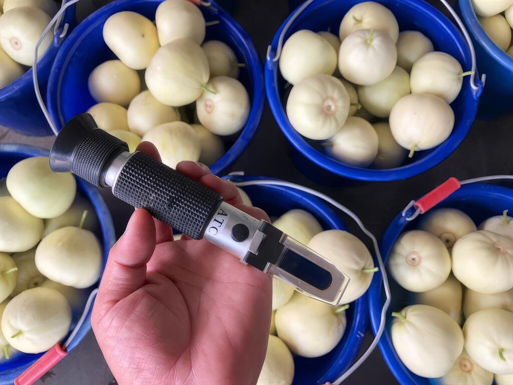 農場第二代沈朝富說,其實果園裡有養蜜蜂負責授粉,「但我們家的蜜蜂太懶了,也許是夏天熱,溫室溫度太高,牠們總是出來摸摸魚後就回家。」雖然氣得要死,但想扣蜜蜂薪水都不知怎麼扣起。