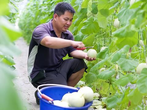 位於嘉義水上的豐碩果園,最著名產品就是冬季的牛奶番茄與夏季的牛奶香瓜,原以為走進果園,會看見農場主人騎著乳牛提著牛奶在澆灌,結果沒有。看到的,是他們扮文青,拿著水彩筆捧起花,像媒人般一朵一朵幫雄花與雌花授粉牽姻緣,看起來就像溫室裡的畫家。