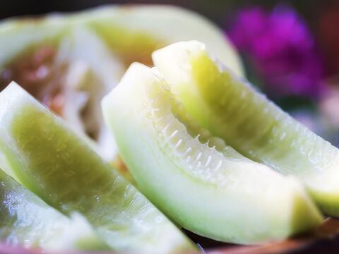 先說哈密瓜。現在基本上只要是厚皮、外觀有網紋的,大家就慣稱為哈密瓜。事實上真的正的哈密瓜主要產於新疆哈密地區,它皮厚僅0.5公分且外表網紋不多,最重要是它的果肉宛如梨子般清脆,由於生產條件與技術較嚴苛,目前台灣主要只種植在宜蘭壯圍。