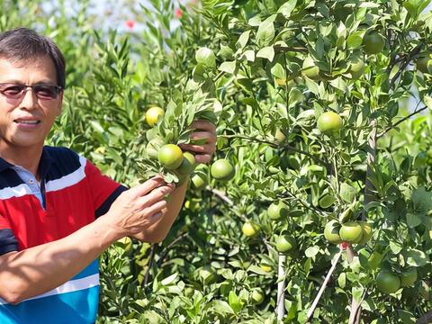 賴仲由回鄉,在父母指導下,不只把柑桔照顧得有聲有色,更不停增加金棗、金桔等多樣芸香科柑桔品種,並在年輕思維下開始減少用藥、開辦觀光採果,並很快以「劍門生態花果園」在當地國小教育圈打出知名度。