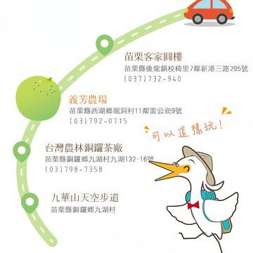 在義芳農場,最迷人的就是那悠悠閒閒、勤勤僕僕的客家氣息,在8、9公頃的廣闊山坡地中,可以任意散步、採果,或預約彭媽媽的客家菜,炒米粉、燒酒雞、白斬雞、客家小炒、三寶柑快炒黑豬肉、桂圓養生糯米飯....等等,都是在地食材好滋味。