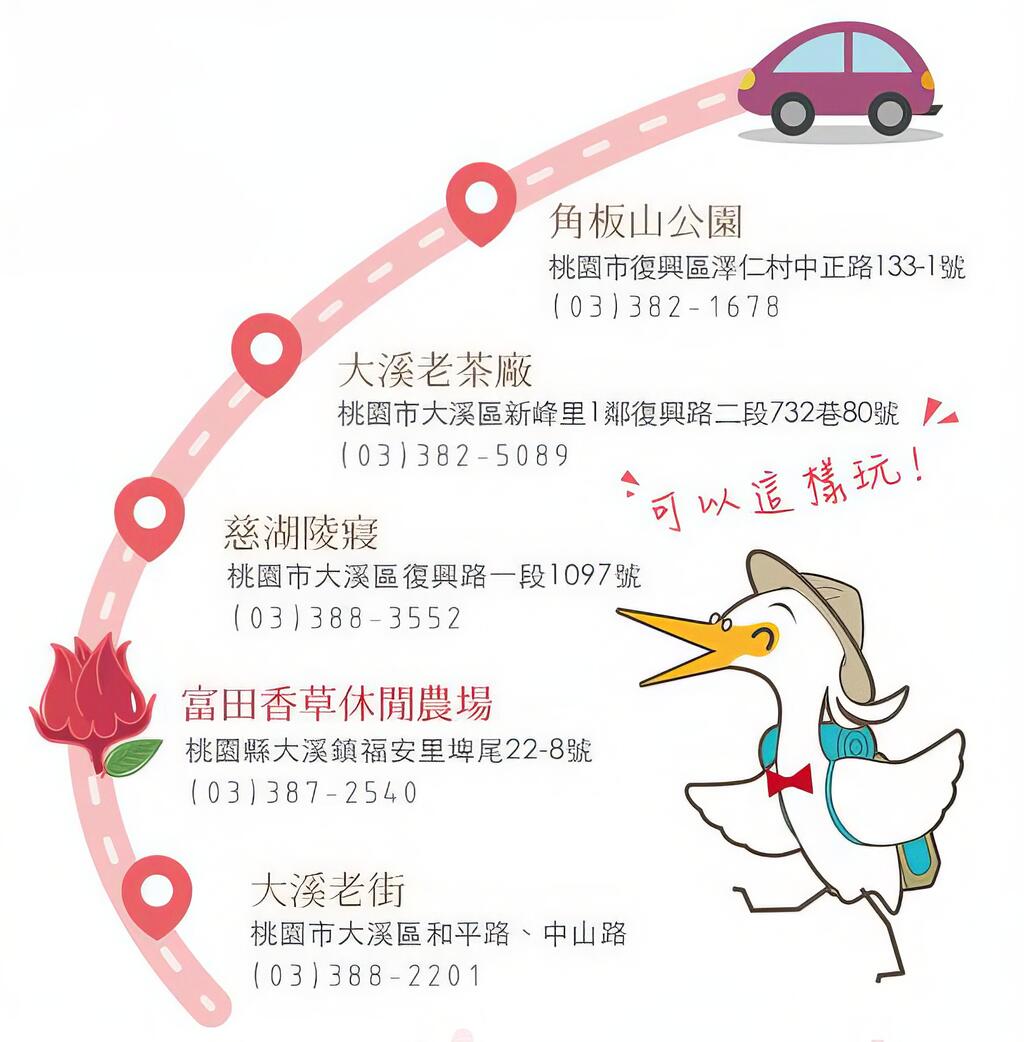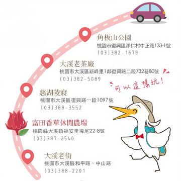 位於大溪慈湖附近的「富田花園農場」,是桃園最著名的休閒農場之一,2002年設立時以花海為主題,一排一排的薰衣草、波斯菊、向日葵....,就如一條條的道路將人領進浪漫情境中,很快偶像劇到富田取景,包含《天國的嫁衣》、《綠光森林》、《鬥牛要不要》、《軍官情人》等等,並在戲劇帶動下,讓富田花園農場每到假日人潮滿滿。
