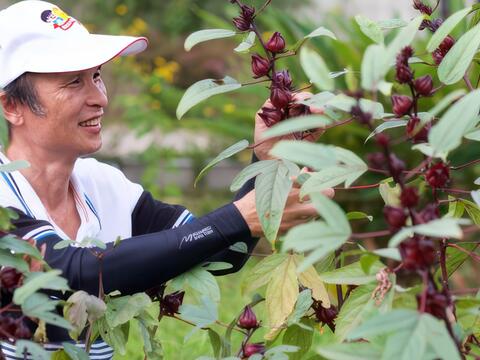 洛神採果/可配合台灣休閒農業發展協會水果旅行之採果體驗券,225元包含農場入園門票+採果前導覽解說+體驗採洛神花(每人約採30粒)+洛神花蜜餞DIY+帶回製作完成之洛神花蜜餞,需先預約。