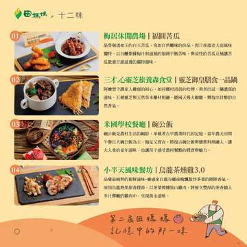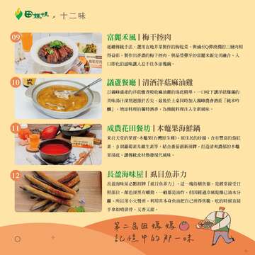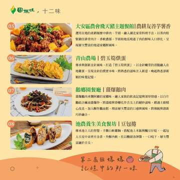 田媽媽運用在地食材,順應節氣烹調美味的餐食,傳遞在地風土飲食,是不能消失的「記憶中的那一味」。農業部從112年開始辦理「記憶中的那一味」傳承新食代選拔活動,強調「友善的特色風土食材」、「獨家的在地美味餐點」、「共感的飲食文化故事」等三大面向,希望可以發掘全臺各地區獨特的食物和其蘊含的飲食文化,逐步打造臺灣農遊美食地圖,吸引國內外旅客一起到農村探所在地飲食文化。