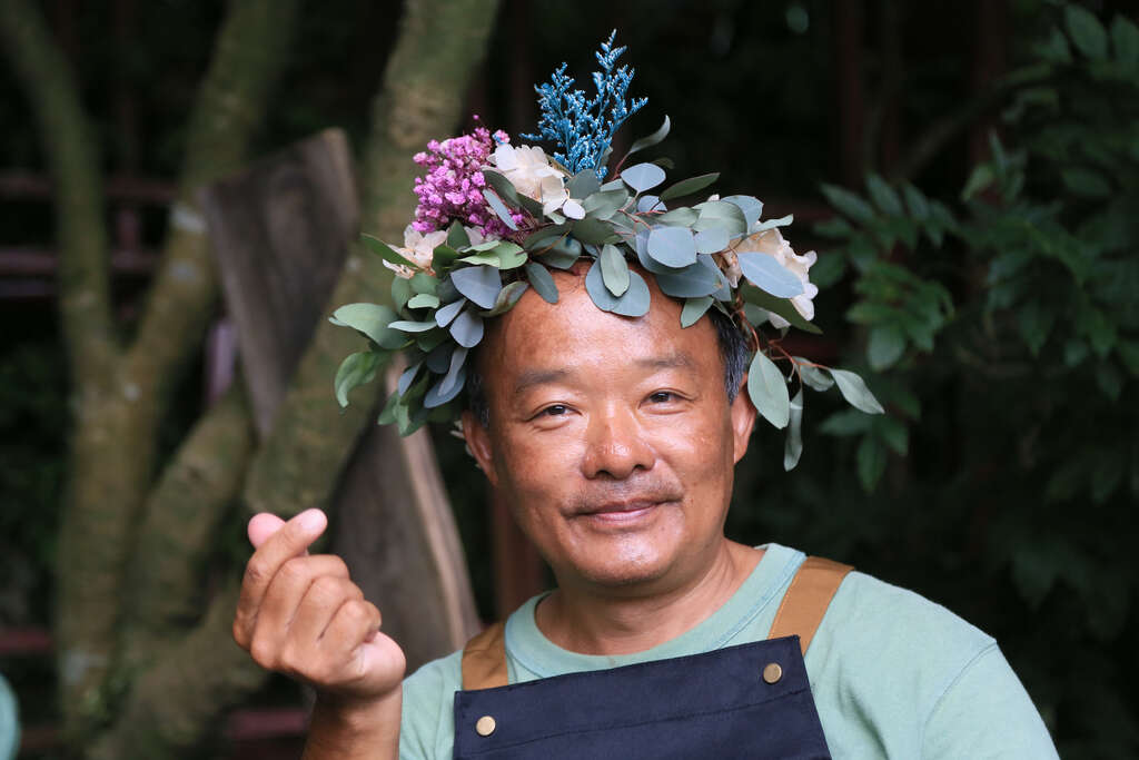 農園主人還現場示範了一個小技巧。如果想為自己的料理或餐點拍美美的宣傳照,只要把花冠適當納入構圖中,10秒鐘就能完成漂亮的擺設,是既省時效果又好的網美道具呢。