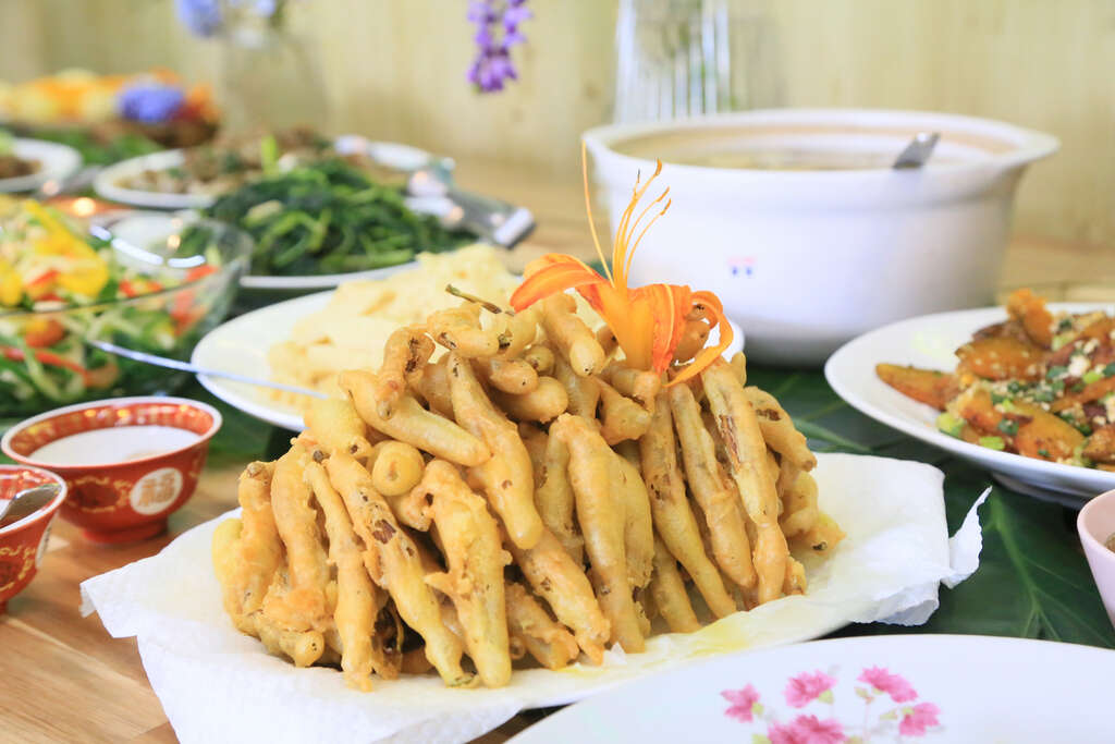 採摘金針花與龍鬚菜,從農場到餐桌,完成午間佳餚