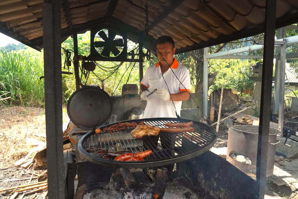 陳裔晴的先生許霹耀,在村裡的hufu(鄒語,涼亭)柴燒烤肉,野趣直接,勾人饞意。