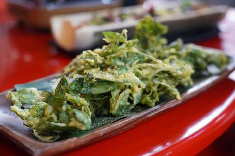 陳裔晴會在山徑採集野菜做成「大花咸豐草天婦羅」,搭配香菜醬油,原味豐美;山間竹林似海,有竹林就有嫩美鮮筍,還有竹筒可當成天然餐具,以整截竹筒盛著的「竹筒蒸蛋」,吃完可抱竹筒回家,正是時髦永續及環保餐飲方式。