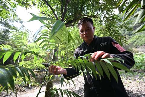 「原夢觀光農園」第二代王孝良,帶我們採集部落香料刺蔥。